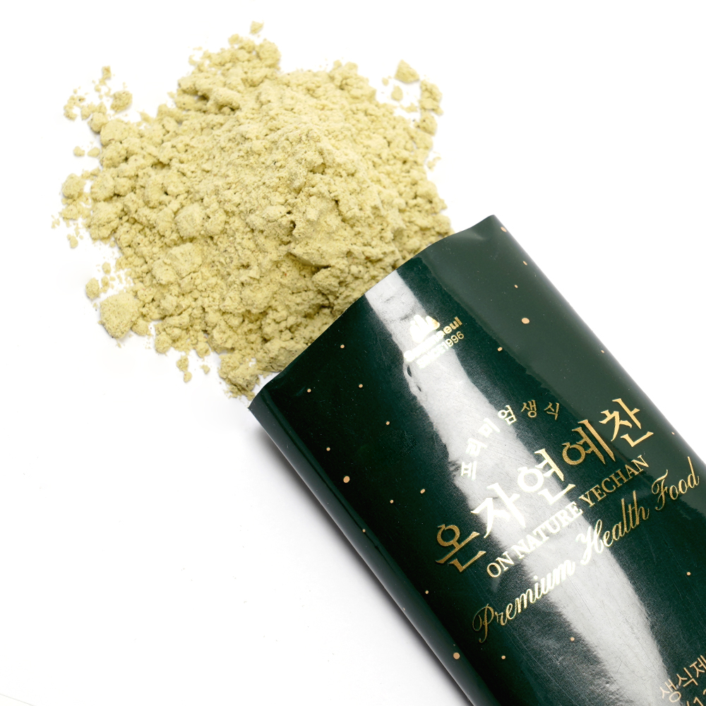 - 현미(국산)41.82%, 사과(국산)8.05%, 볶음백태(국산)5.85%, 옥수수(국산), 보리현미(국산), 유기농베리혼합분말(미국:포도분말, 석류분말, 아세로라추출물, 말토덱스트린, 블루베리분말, 아사이베리분말, 체리분말, 빌베리분말, 라즈베리분말, 딸기분말, 블랙커런트분말, 크랜베리분말), 프락토올리고당, 유기농감자(국산), 유기농케일(국산), 유기농감귤(국산), 메밀(국산), 볶음서리태(국산), 수수(국산), 볶음약콩(국산), 율무(국산), 차조(국산), 팔라티노스, 분리대두단백(싱가폴산), 혼합유산균, 유기농당근(국산), 고구마(국산), 밀(국산), 적두(국산), 찹쌀현미(국산), 유기농양배추(국산), 유기농시금치(국산), 유기농신선초(국산), 도라지(국산), 김(국산), 다시마(국산), 미역(국산), 젖산마그네슘, 유기농셀러리(국산), 단감(국산), 딸기(국산), 효모식품, 미강(국산), 미나리(국산), 쌀눈(국산), 아미노믹스(L-페닐알라닌, L-로이신, L-메티오닌, L-라이신염산염, 팔라티노스, L-이소로이신,L-발린, L-히스티딘, L-트레오닌, L-트립토판), 연근(국산), 우엉(국산), 자색고구마(국산), 호박(국산), 유기농브로컬리(국산), 뽕잎(국산), 표고버섯(국산), 유기농보리새싹(국산), 뉴트리오스(프랑스산), 젖산칼슘, 유기농아로니아(국산), 느타리버섯(국산),마(국산), 부추(국산), 새송이버섯(국산), 솔잎(국산), 울금(국산), 차전자피(인도산), 청국(대두:국산)